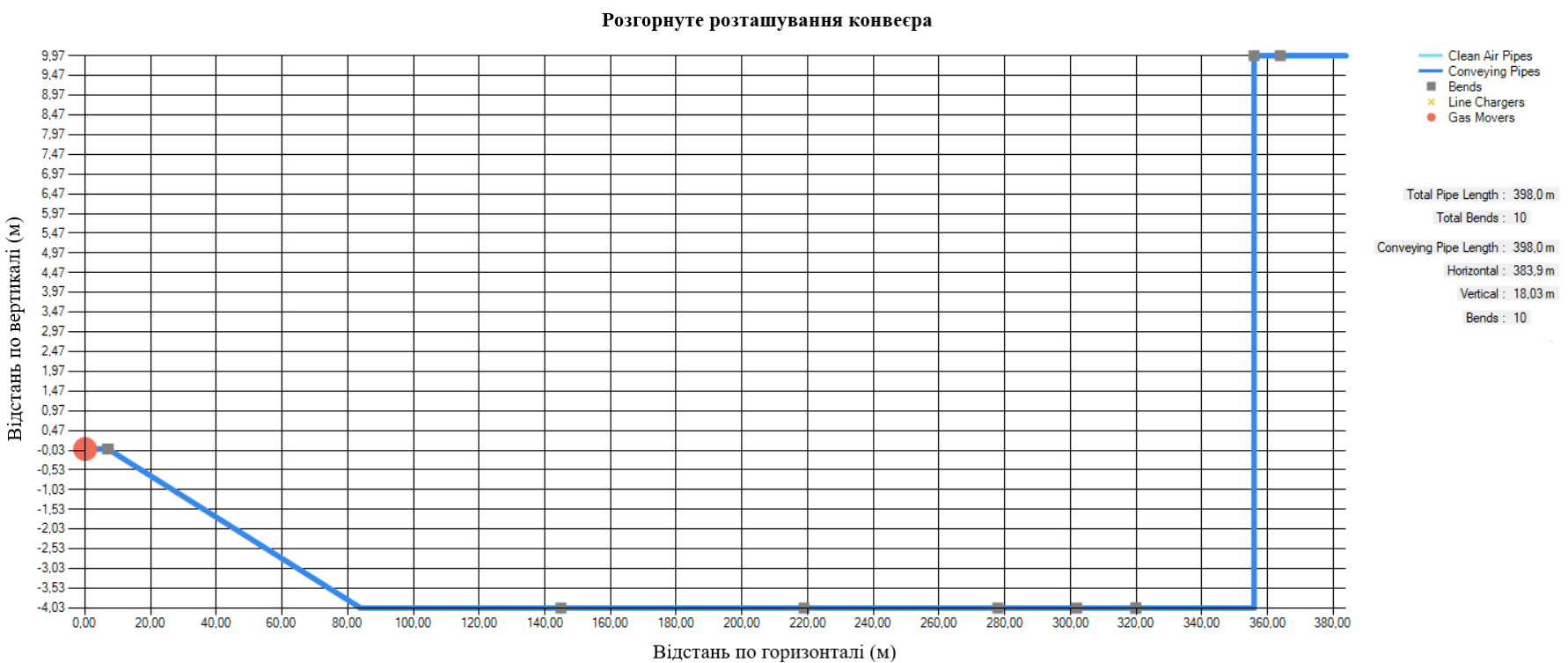 При виконанні робіт з проектування системи пневмотранспорту, в ТЕПЛОТЕХ приділяється велика увага оптимізації майбутнього матеріалопроводу, адже загальна довжина конвеєрної лінії, включаючи горизонтальні та вертикальні сегменти, впливає на потреби в енергії.