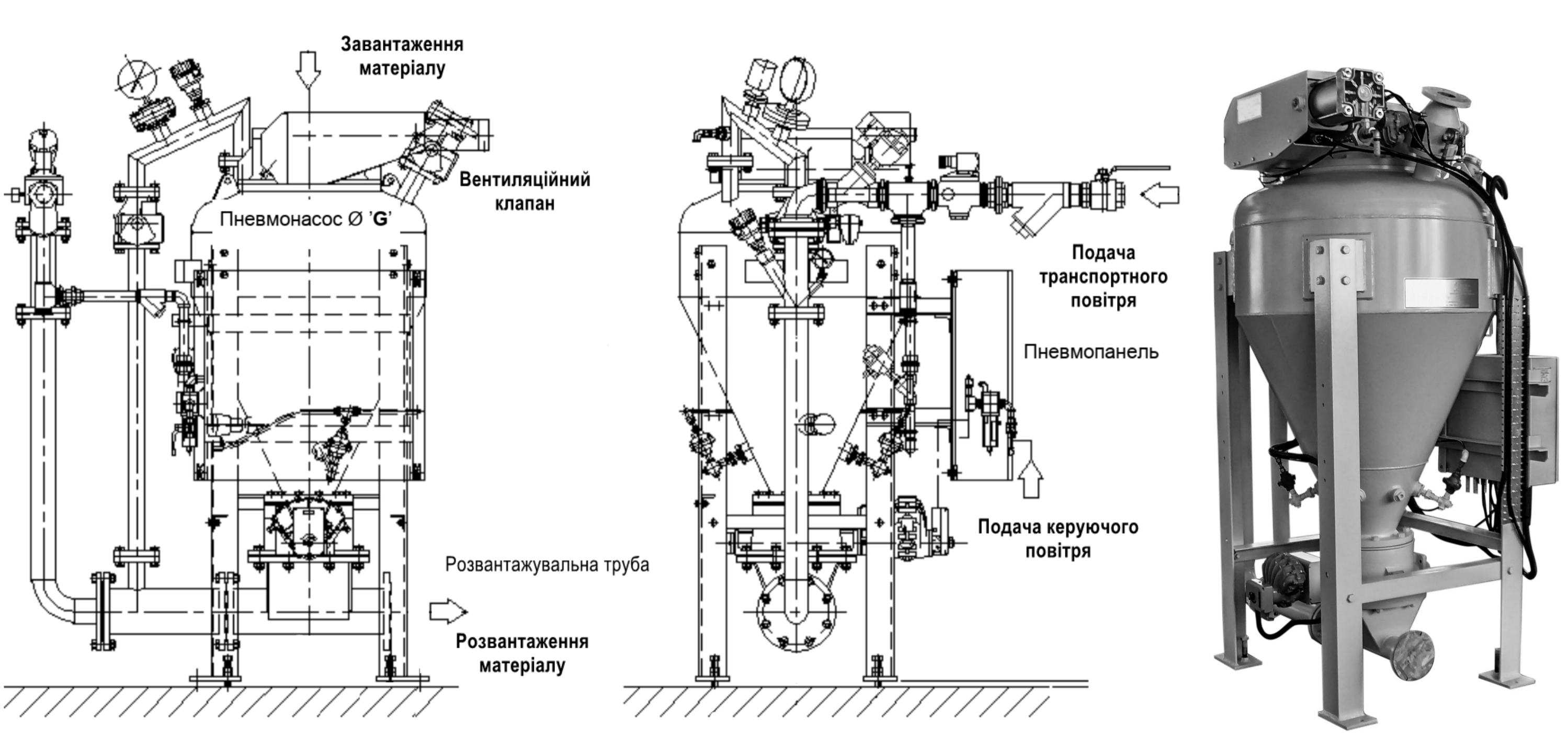 Пневмокамерні насоси встановлені безпосередньо під завантажувальним бункером матеріалу.