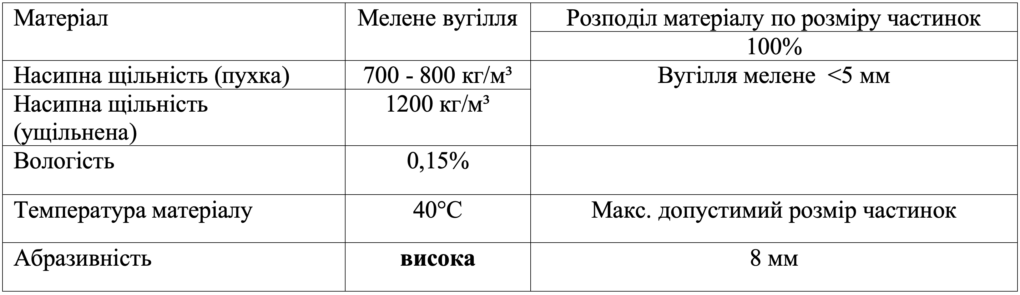 Кожна система для транспортування подрібненого вугілля з бункера до силосів складається з одного пневмокамерного насоса, який з'єднаний із завантажувальним бункером через сильфонну вставку і відключаючий пристрій – ножову засувку..