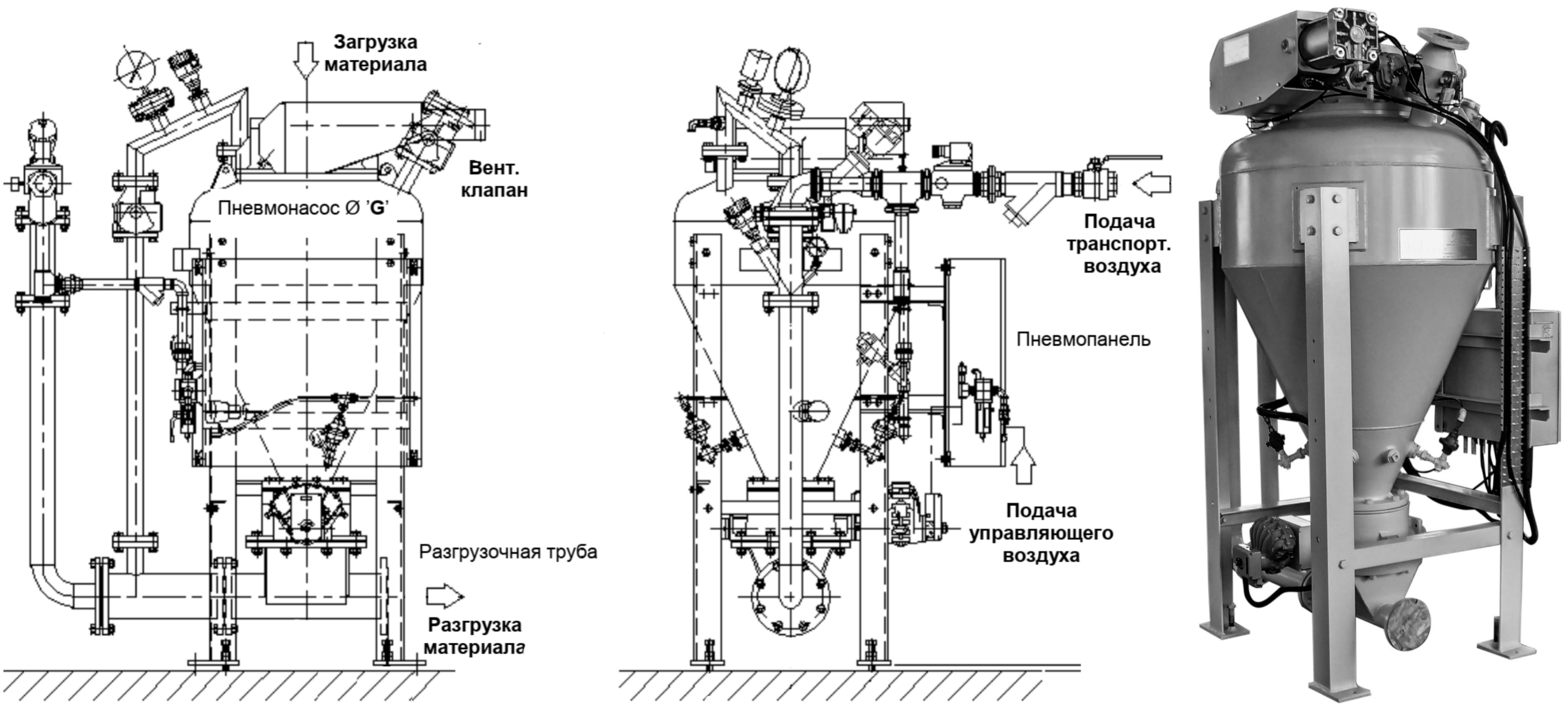 Пневмокамерные насосы усыновлены непосредственно под загрузочным бункером материала.