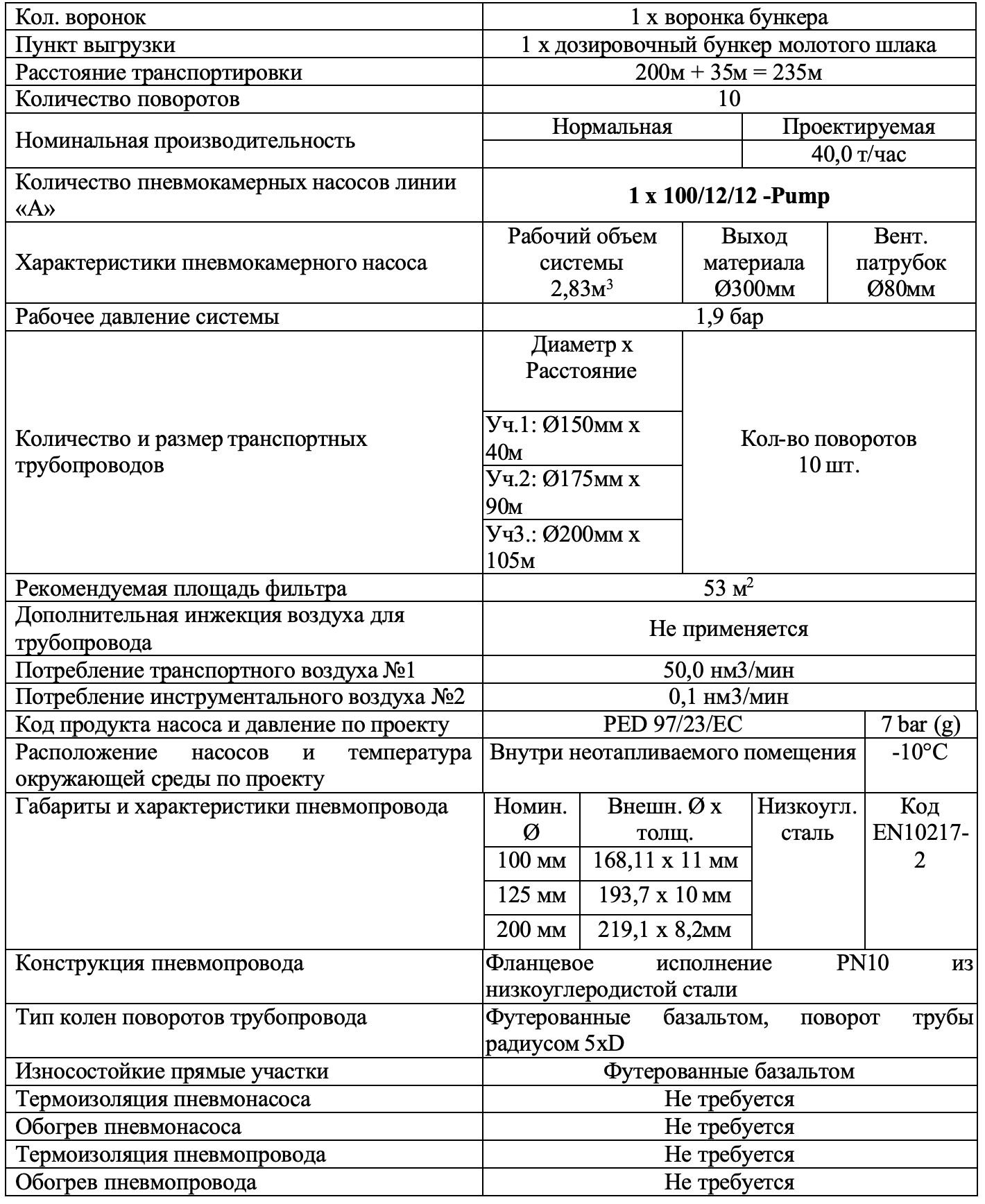 - Пневмотранспортная система «А» – транспортировка измельченного угля, из-под загрузочного бункера в силос хранения №5 и №6 с использованием системы транспортировки оснащенной одним пневмокамерным насосом и одним транспортным трубопроводом.